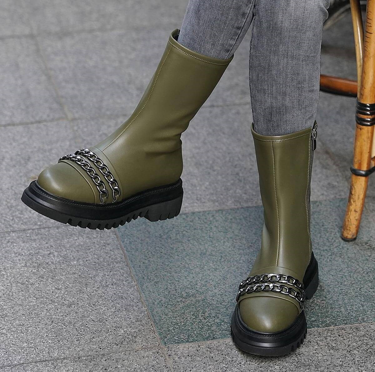 Cizme Antonia verzi din piele eco