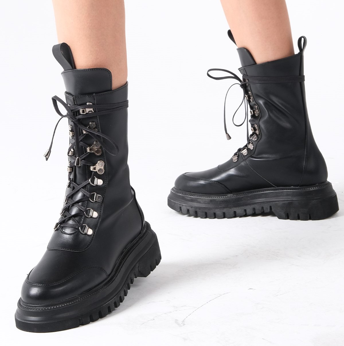 Ghete Daniela negre din piele eco