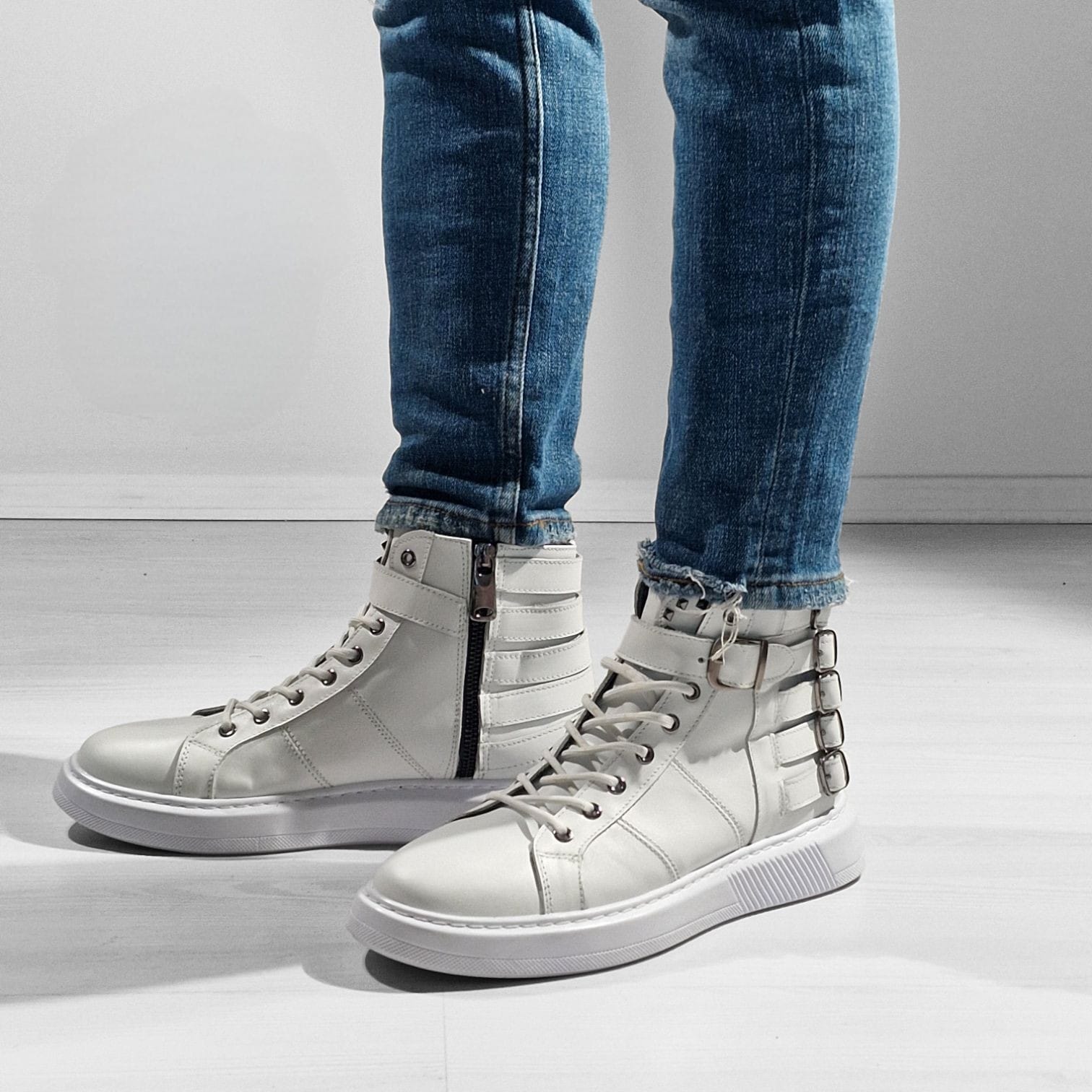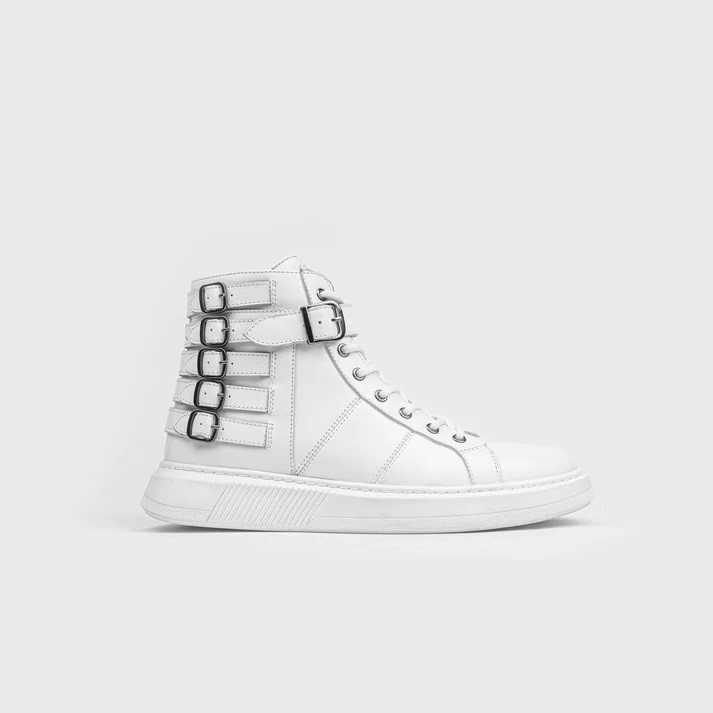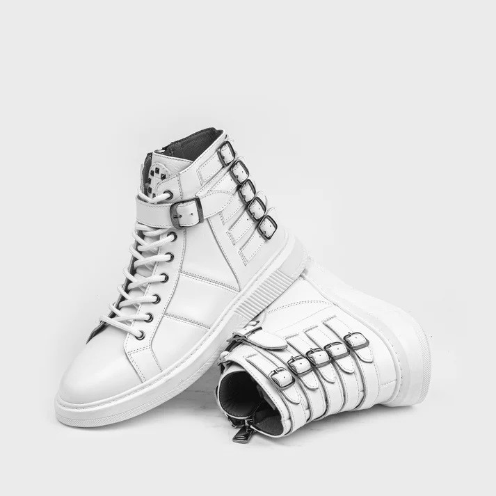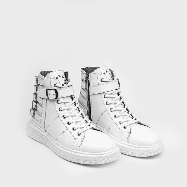 Ghete SPARTACUS albe din piele naturală