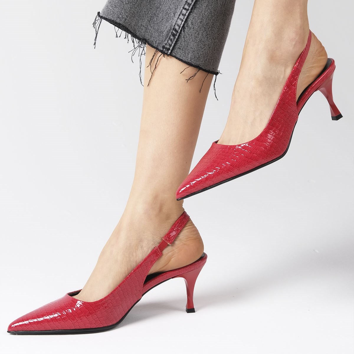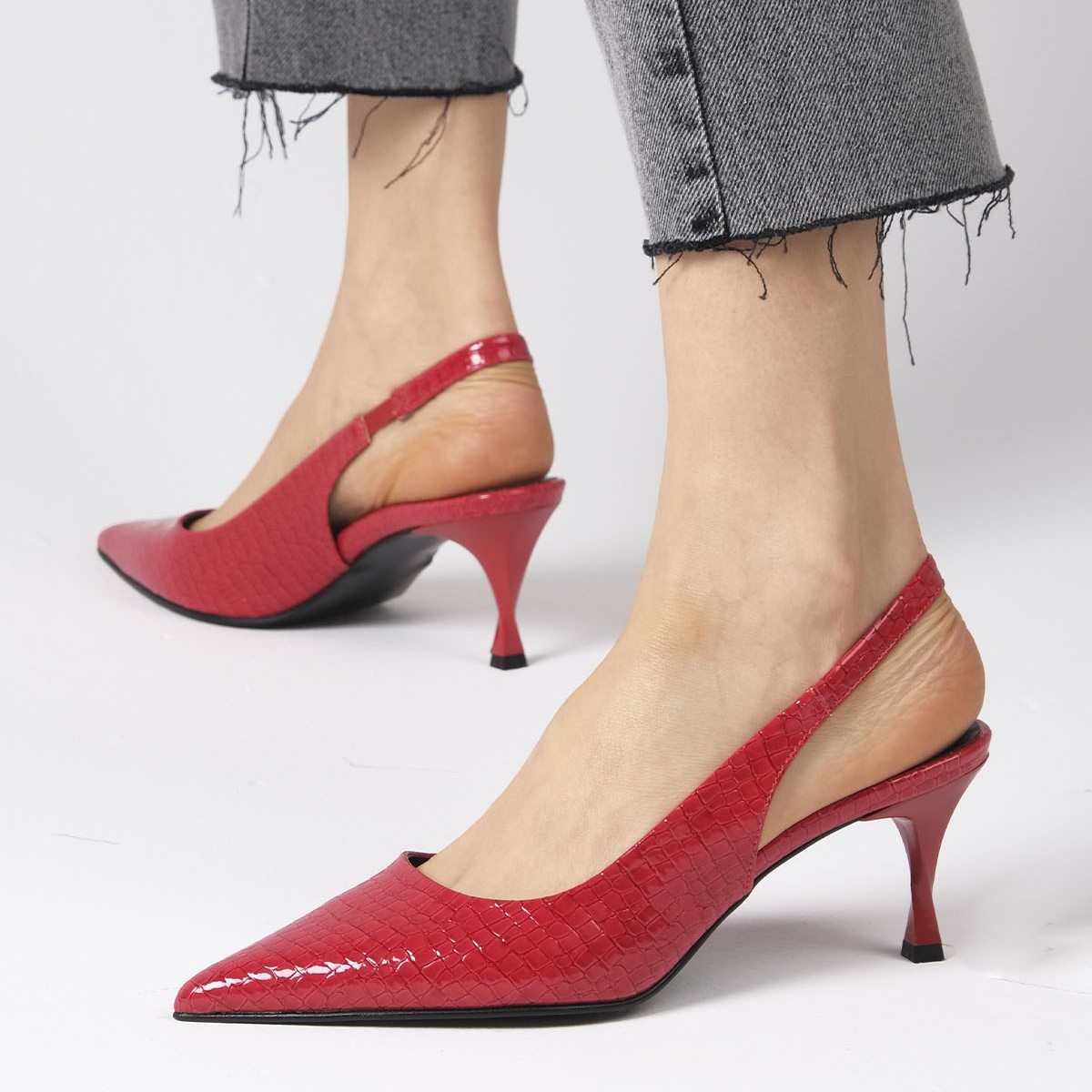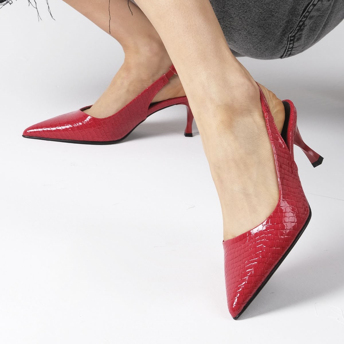 Pantofi CORINA roșii din piele naturală