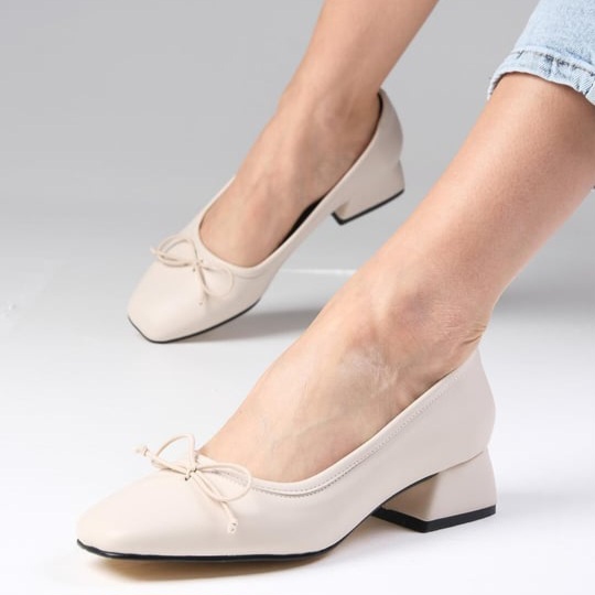 Pantofi DORINA ecru din piele naturală