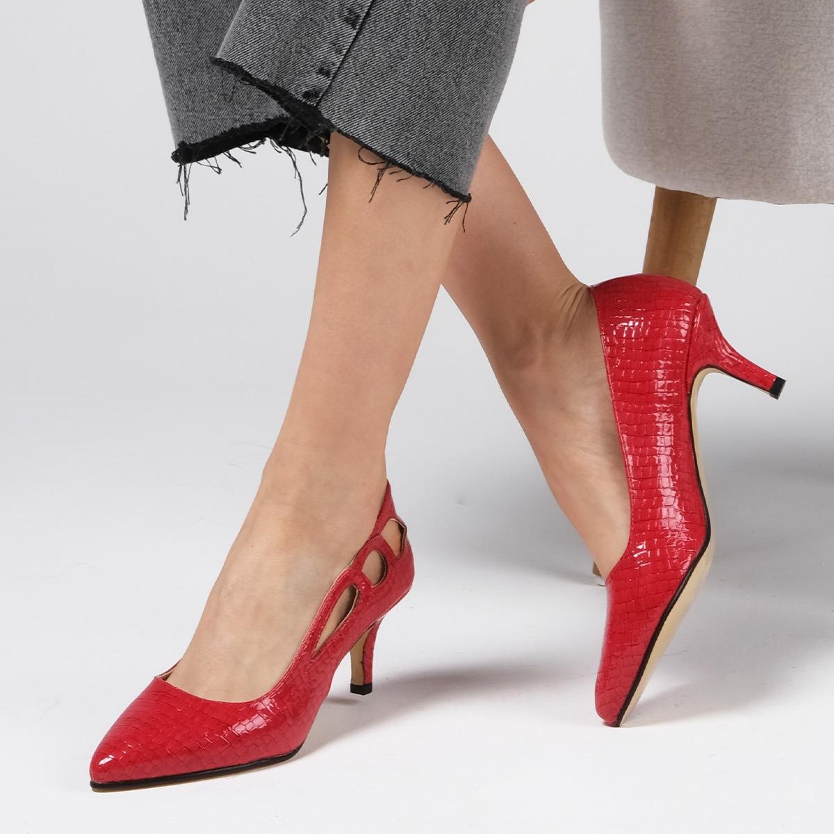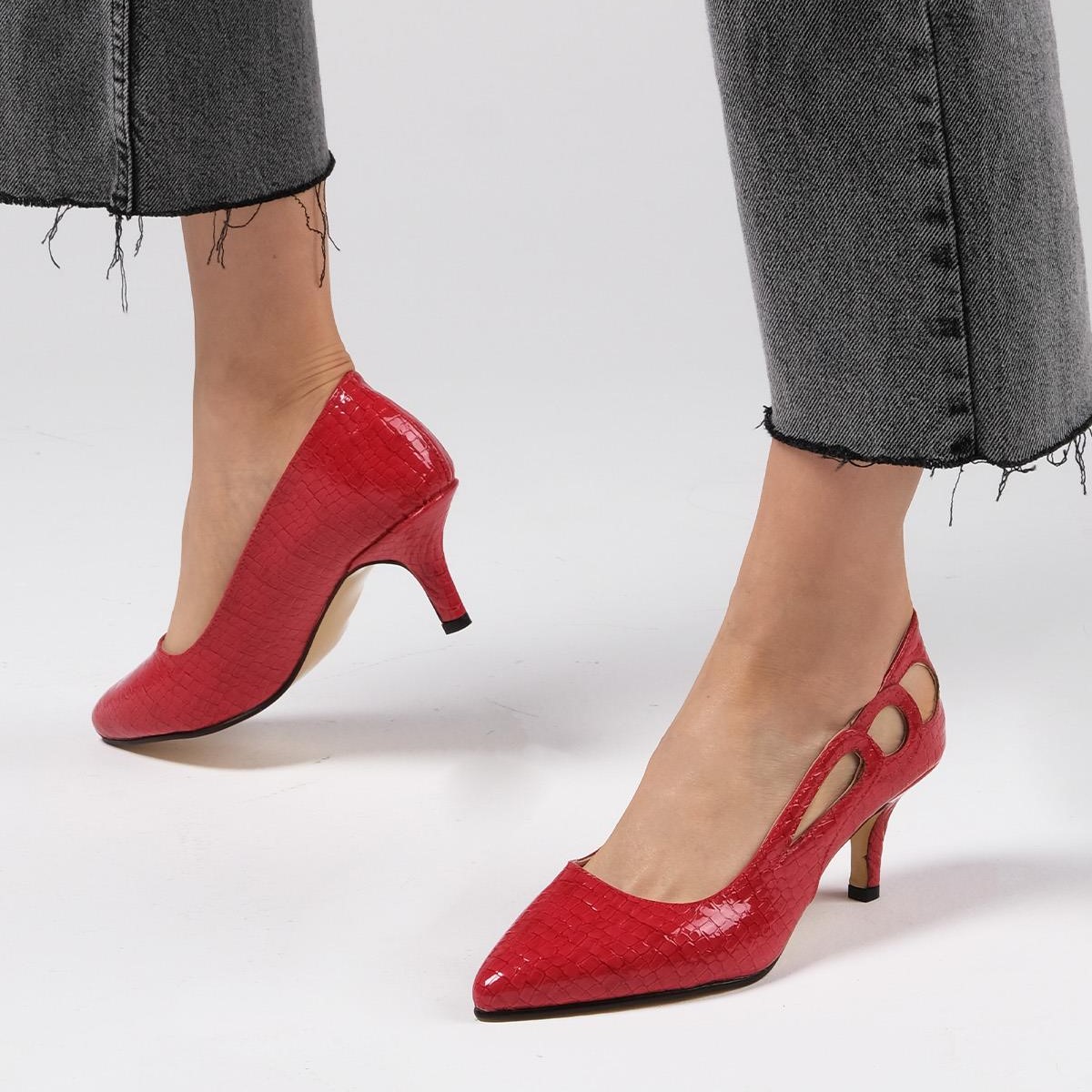 Pantofi cu toc pentru femei, realizați din piele naturală lucioasă