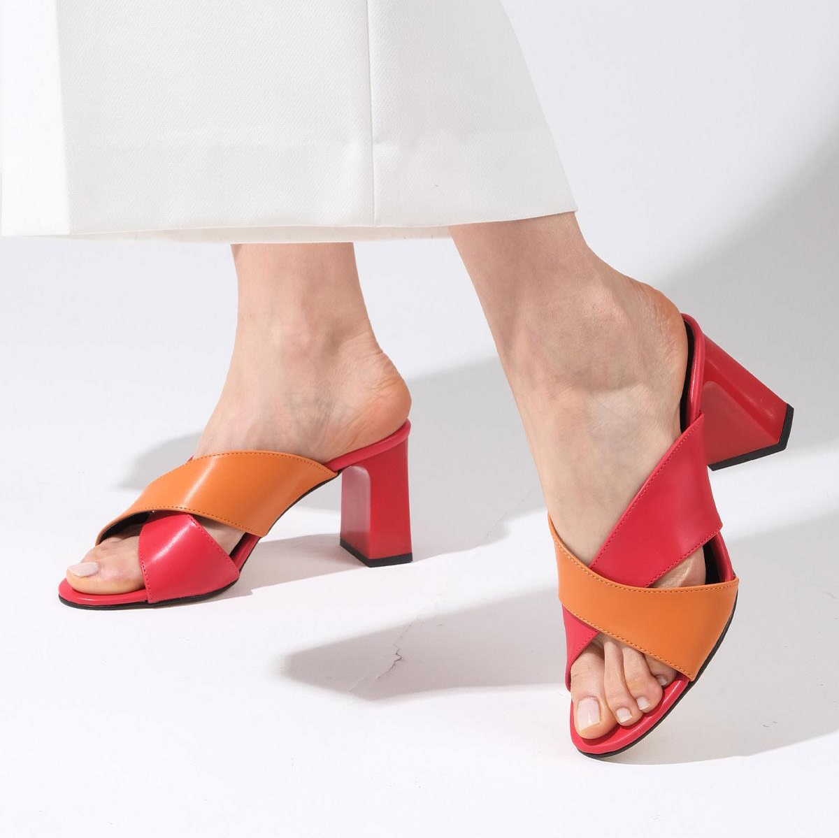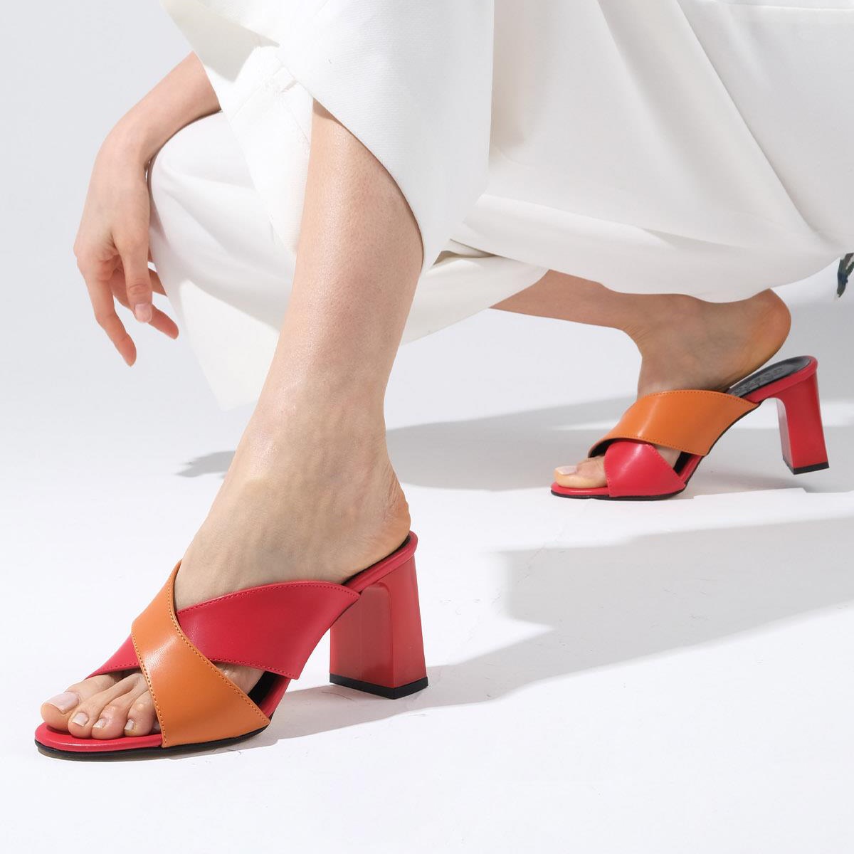 Saboți EDIT roșu&portocaliu din piele naturală