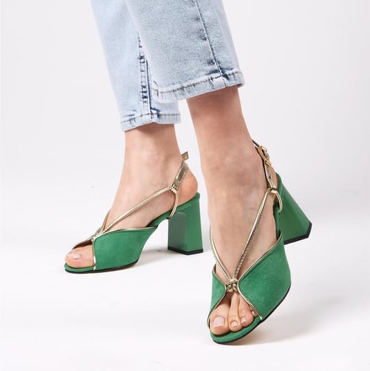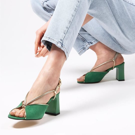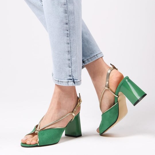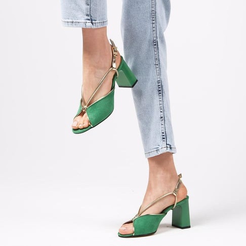 Sandale ȘTEFANIA verzi din piele întoarsă